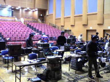 皆さん早くも、機材・マイクの準備に大忙しです。(1人でマイクを10本ぐらいは立てる人もいますからね!)