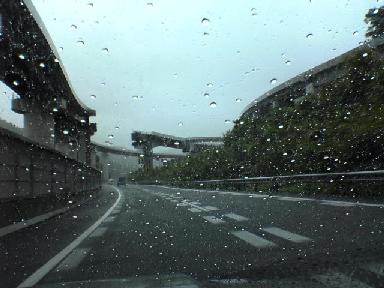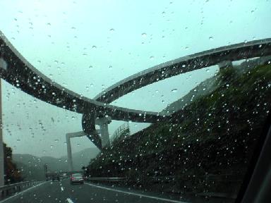 雨の中央道です。来年の3月に完成予定の八王子ジャンクションです。