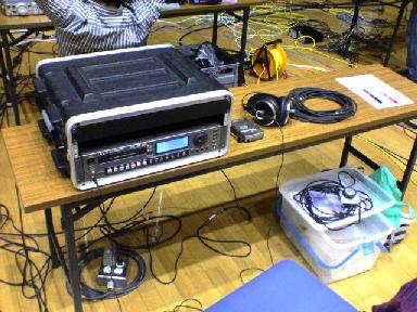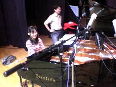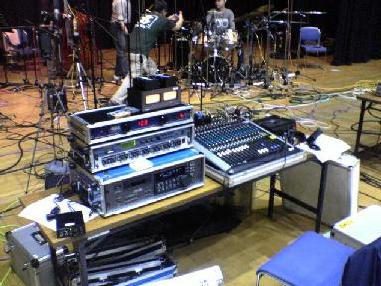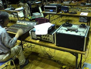 一つは従来通りステージ手前から全体を収録する方法を、金田式DCマイクとTASCAM DV-RA1000で収録。