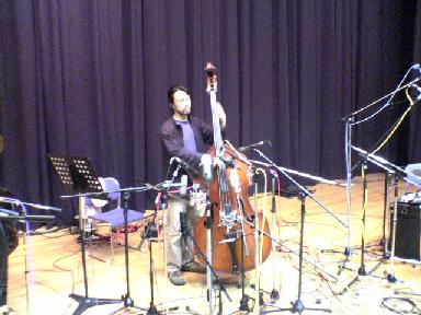 オーディオテクニカのマイクで収録した方は、ベースとの距離が50cmともあって、ベースの音がたまらなく良いです。ベーシストの指使いもリアルに見えてきます。ただ幾つか残念な事は、定位が全体的に中央に寄っていて広がりが無い事です。ドラムの音源も後ろから来ていますから、スピーカーで再現をすると中央の奥にぼやけて定位する感じです。また、録音機材がポータブルのDATの内臓のマイクアンプを使用していた為、大きな音の部分では入力オーバーになってしまい、所々歪みも出てしまいました。